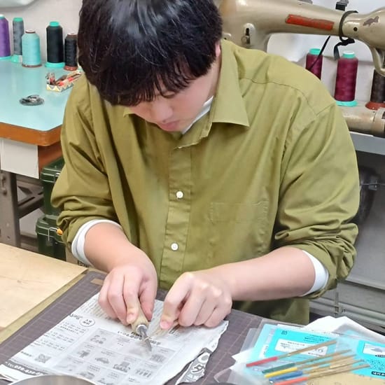 大学在学中から教室に通い始め、大学卒業後は靴のメーカーでアルバイトをしながら教室で勉強中。「教室の皆さんと切磋琢磨しながら技術を身につけ、いずれは靴作りを仕事にしていきたいです!」